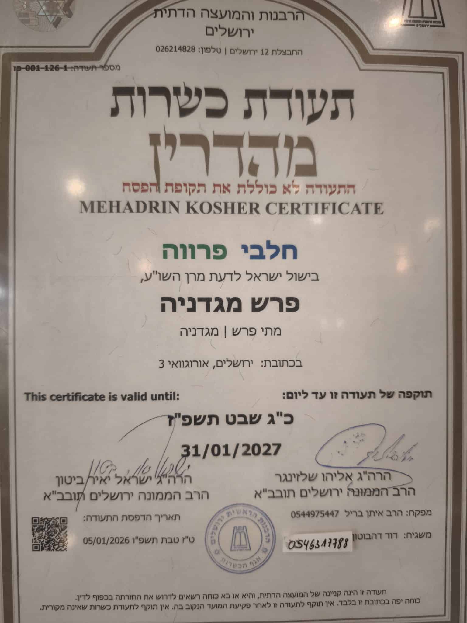 העוגות כשרות למהדרין בהשגחת הבד"ץ ירושלים.